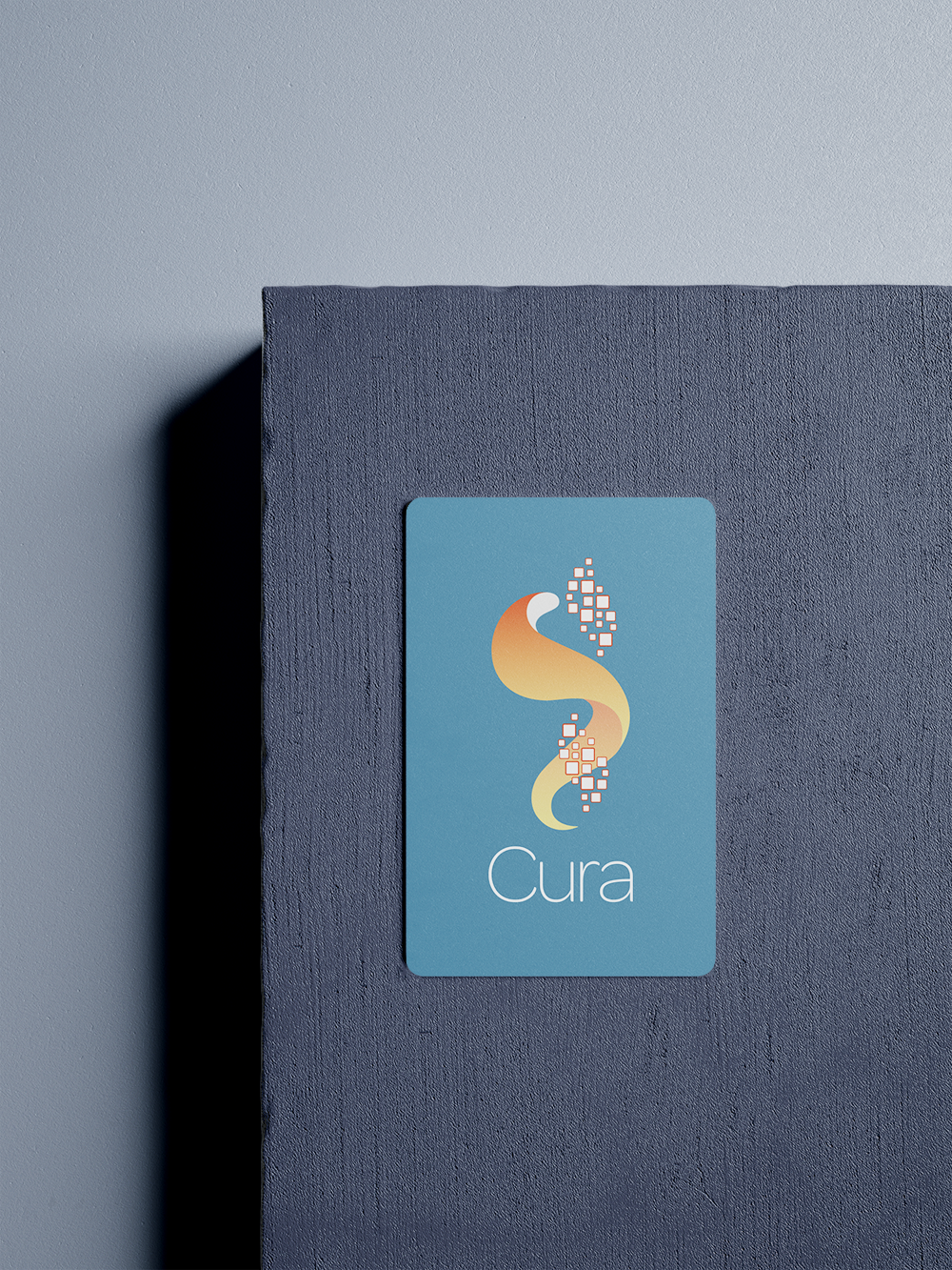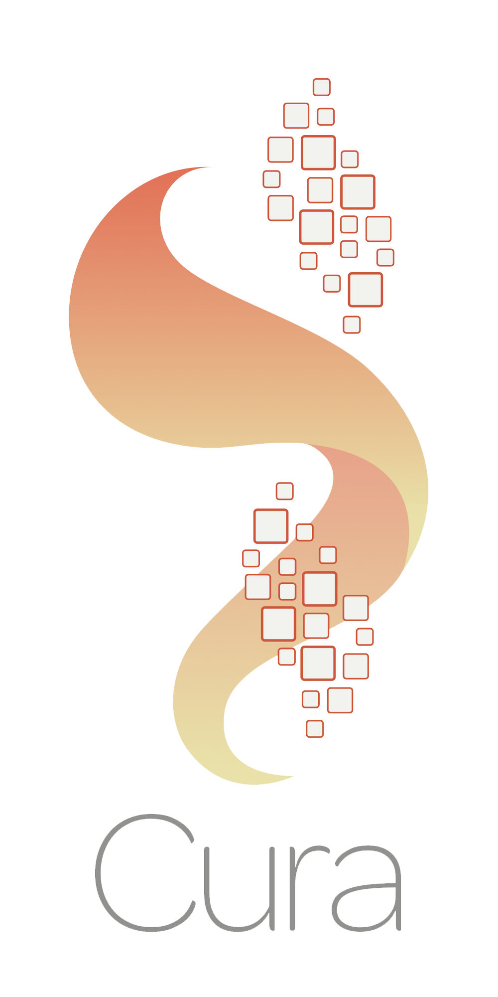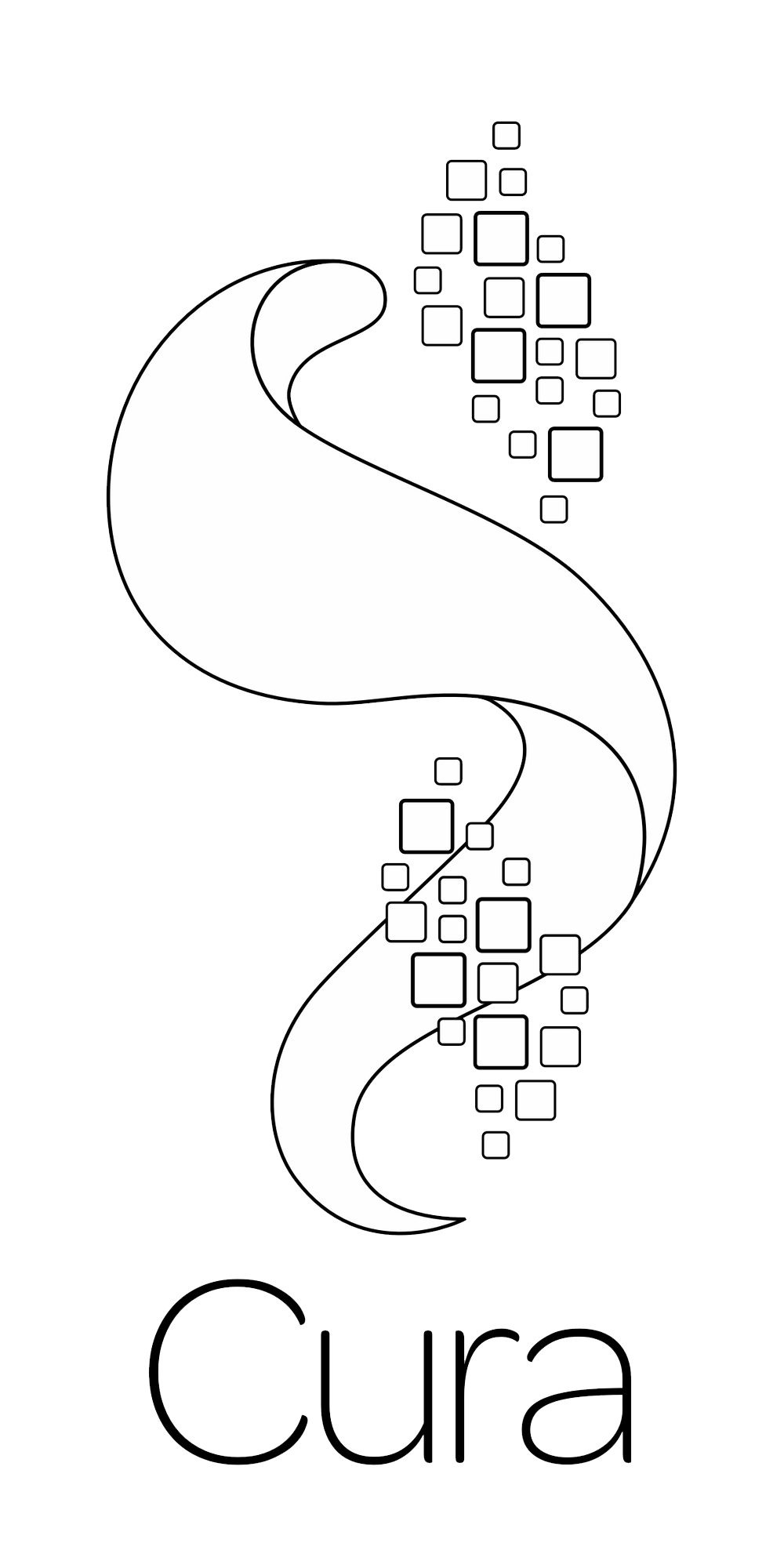 Cura's logo is composed of a Logotype and a Symbol. The Symbol itself is composed of two elements. The Snake of Asclepius & a flux of data Bits. The data bits move in a spiral movement & is captured by the snake coiling around it